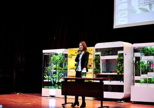 北京农众实业有限公司副总经理甄雪成致辞,他首先对获奖的老师和学生表示衷心的祝贺,并表示回到母校感到激动不己。他对今年参赛学生的作品给予充分的肯定,指出学生的创业思维、理念等较之去年有了极大的进步,他期待明年的“植物芯工厂”杯阳台农场设计大赛能够办得更好。